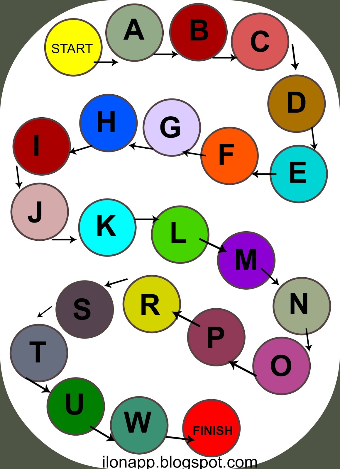 Podczas tworzenia drugiej planszy inspirowałam się wpisem na Mominspiredlife, gdzie w kółeczkach wpisywano literki aktualnie ćwiczone lub wymagające utrwalenia.