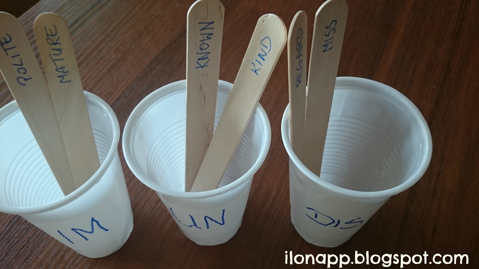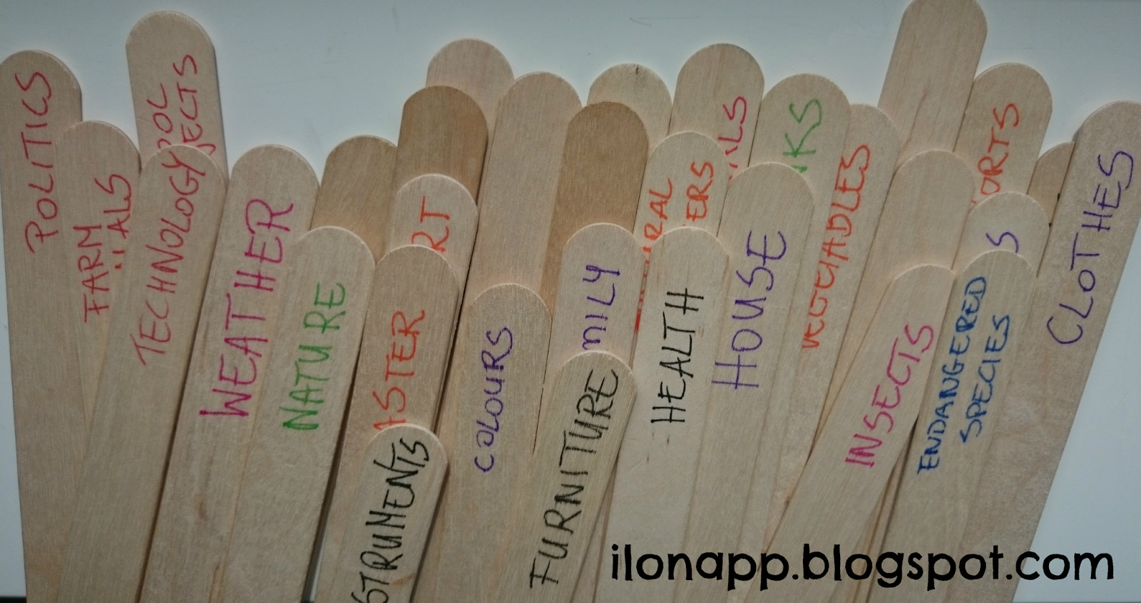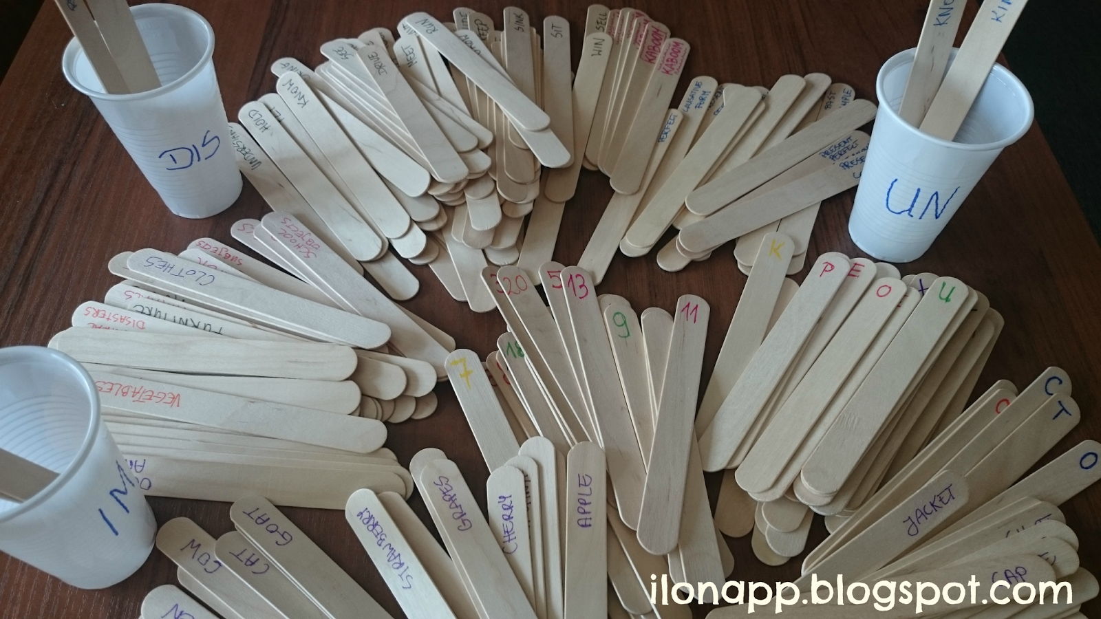 Ostatnio wpisałam na patyczkach pytania i odpowiedzi obustronnie. Uczniowie musieli dopasować właściwie 🙂
