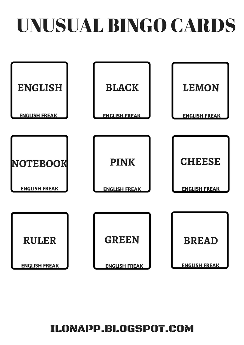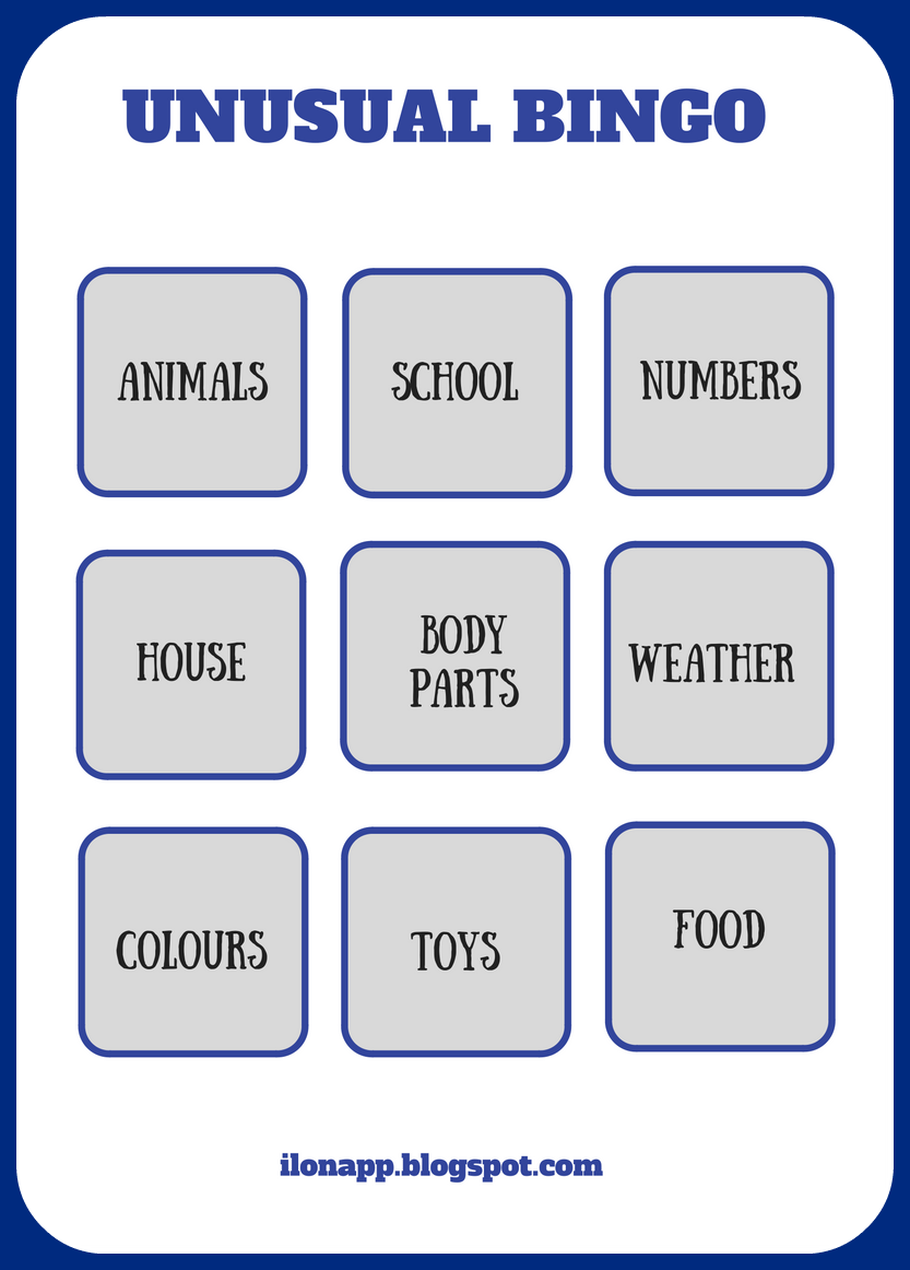 Stworzyłam bingo z kategoriami, dzięki czemu możemy powtarzać słownictwo z kilku działów tematycznych. Dobór słownictwa zależy od podręcznika oraz poziomu językowego grupy. Dlatego też w pliku znajdują się tylko przykładowe wyrazy.
