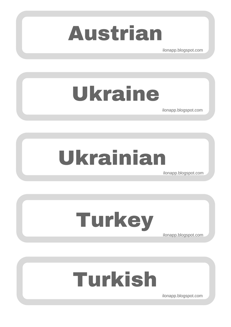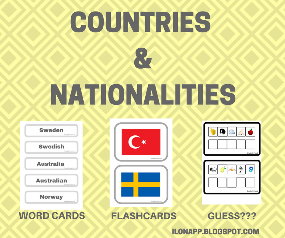 | COUNTRIES & NATIONALITIES: FLASHCARDS, WORD CARDS, CODES |