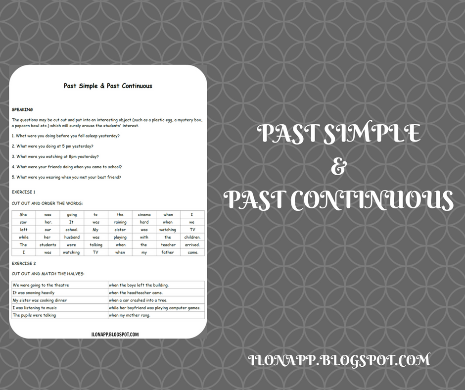 Szybciutka karta pracy dotycząca czasów Past Simple oraz Past Continuous. Znajdziecie na niej kilka pytań, zdania do pocięcia (uporządkuj wyrazy) oraz dopasowywanie połówek zdań. Polecam wydrukować na kolorowym papierze oraz zalaminować lub dla większych grup na białym bez laminowania celem wklejenia do zeszytu.