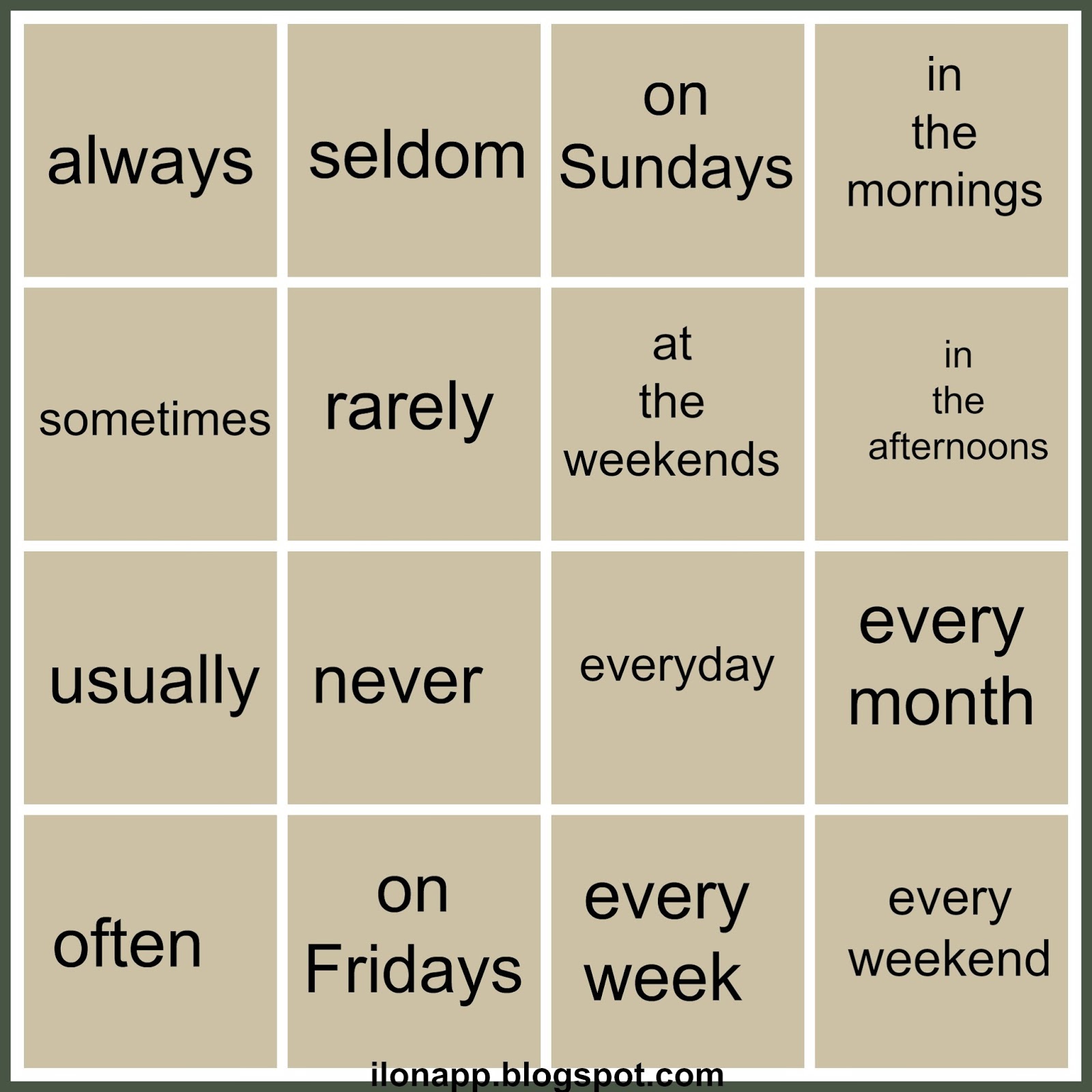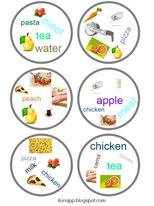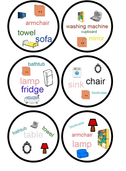 - tematyka: kolory, przybory szkolne, cyfry 1-10, wakacje, sport, jedzenie (karty obrazkowe, Let’s Eat Game, Hungry Bird, sudoku itp.), speech bubbles, czasowniki nieregularne, gatunki i instrumenty muzyczne, pogoda, kraje i narodowości, meble i pomieszczenia w domu (karty obrazkowe i wyrazowe, gra My Shopping List, plansze z pokojami),
