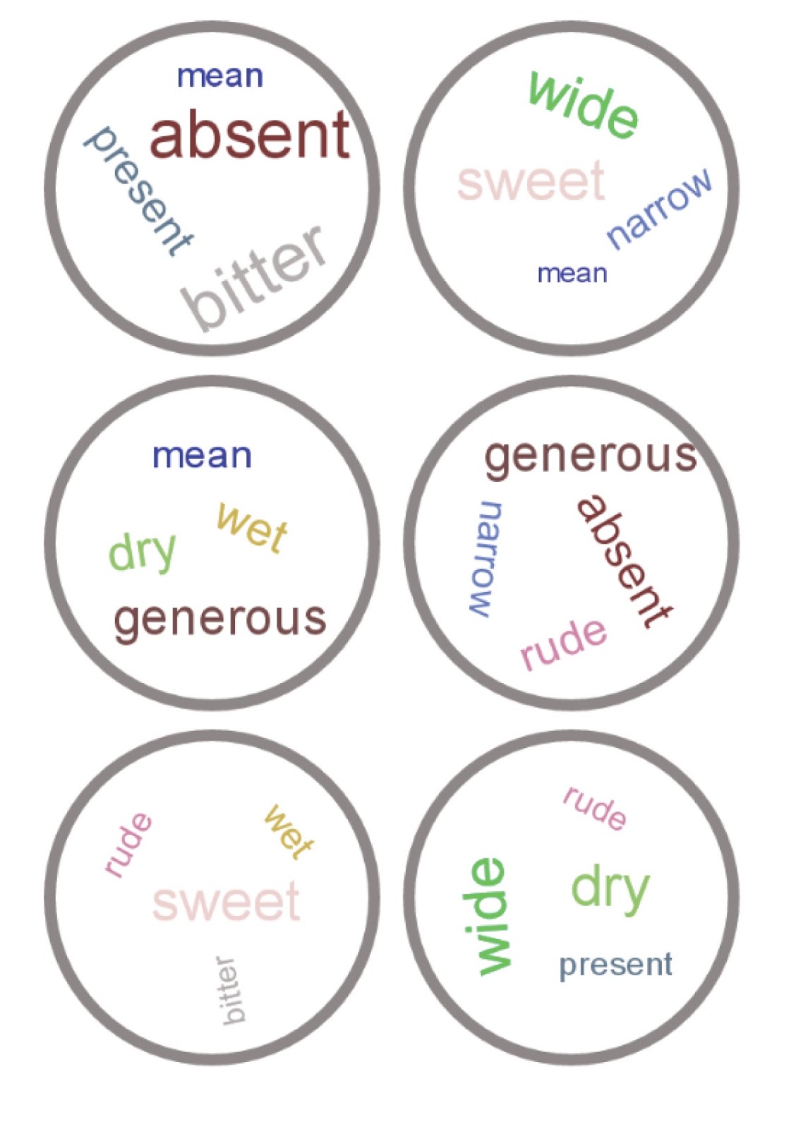 - DOBBLE leksykalne w wersji obrazkowej, obrazkowo-wyrazowej oraz wyrazowej