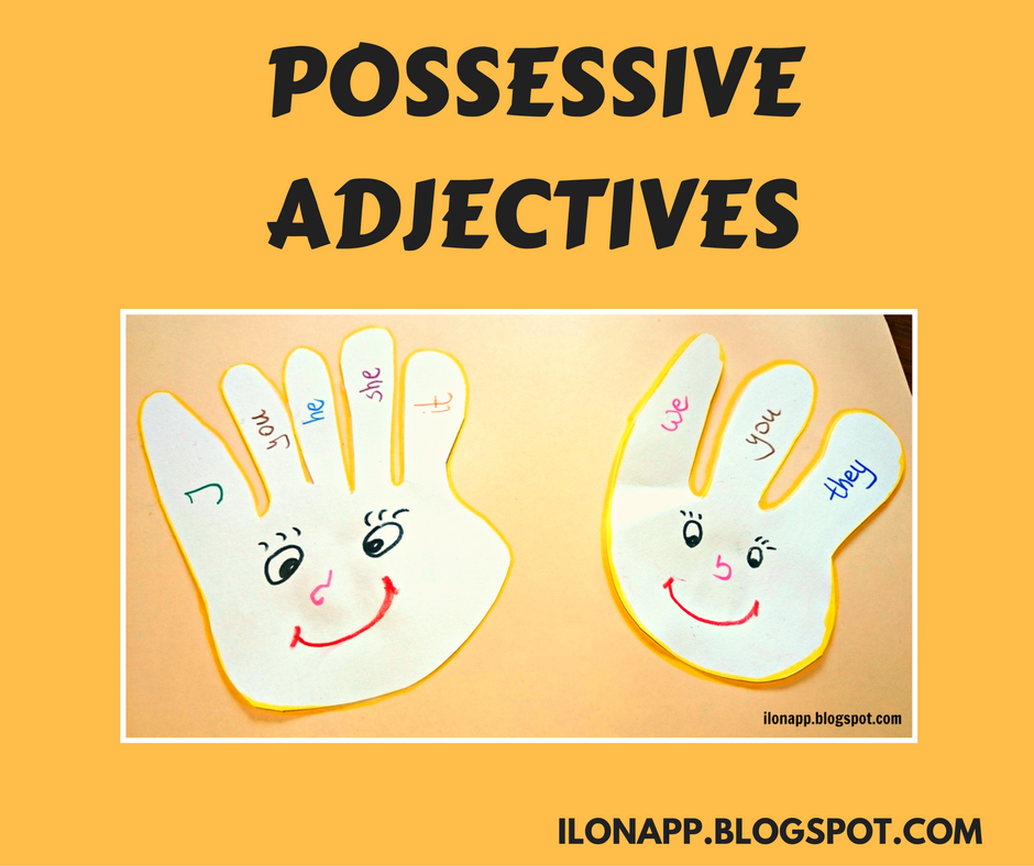 W podręcznikach przymiotniki dzierżawcze są często przedstawiane w postaci tabelek, podobnie zresztą jak wiele innych rzeczy. Myślę, ze warto zaproponować naszym uczniom inne zobrazowanie poszczególnych elementów gramatycznych. Ewa Szymkowiak proponuje świetne pomysł na czasownik „być”, zaimki pytające oraz czytanie godzin – jestem zachwycona jej graficznymi wariacjami.
