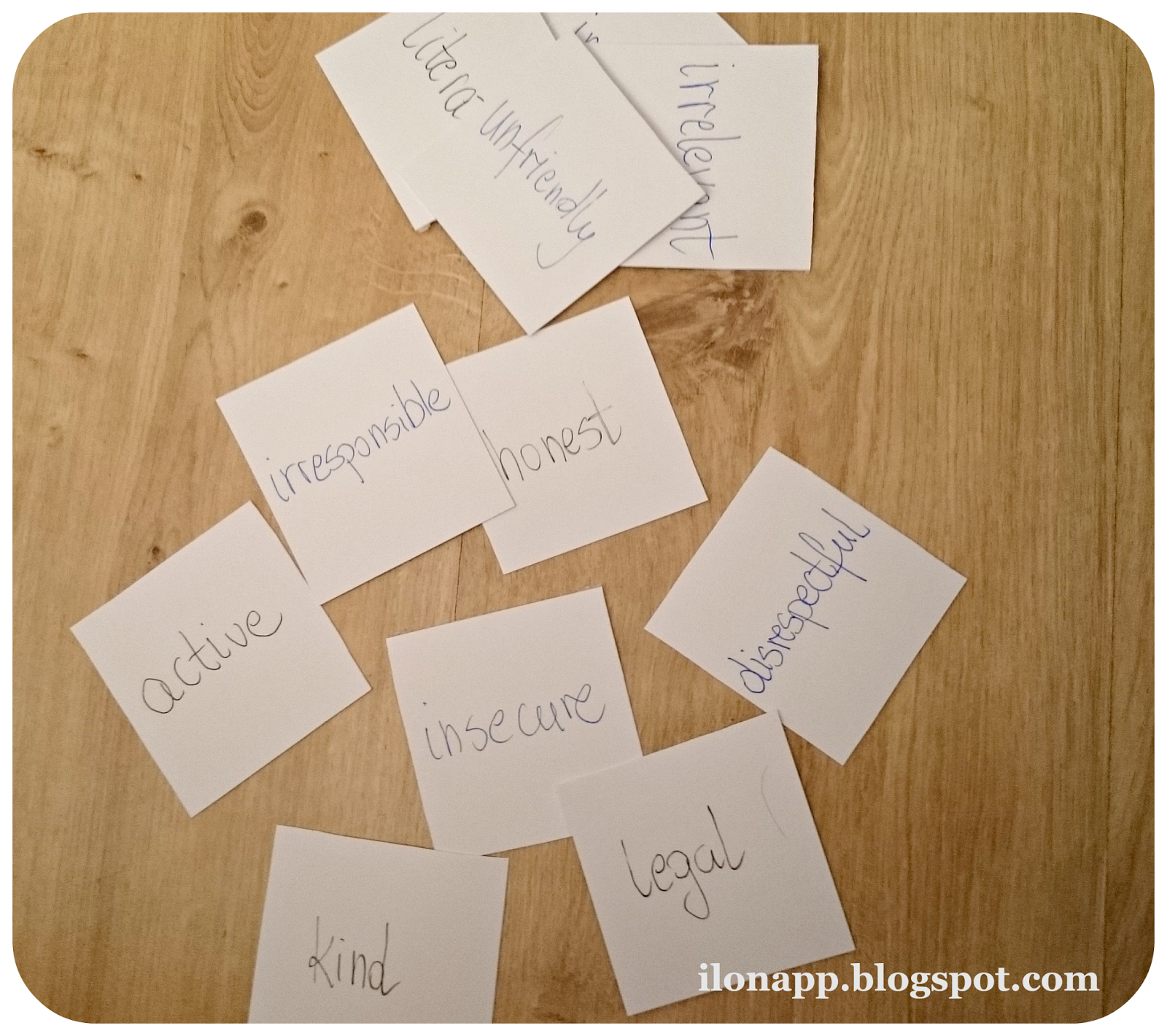 Kontynuuję temat przedrostków przydatnych do tworzenia przymiotników o znaczeniu przeciwnym. Jak już wspomniałam w poprzednim wpisie mamy wiele odstępstw od reguły. Jak to wszystko spamiętać? Czy jest to w ogóle możliwe? Poniżej przedstawię kilka pomysłów na utrwalenie takiego słownictwa. Pomysły mogą zostać zaadaptowane również do innych zagadnień leksykalnych.
