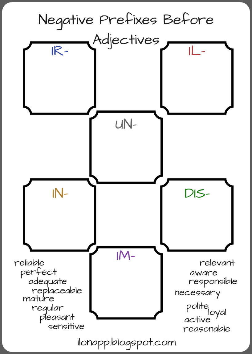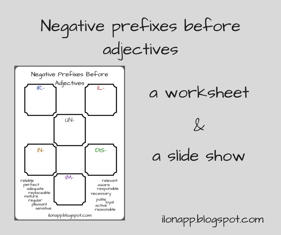 Tworzenie przymiotników o przeciwnym znaczeniu za pomocą przedrostka spędza sen z powiek niejednemu uczniowi. Dlaczego? Dzieje się tak dlatego, iż niby mamy jakieś reguły, ale od tej reguły oczywiście są wyjątki! Ponadto,  ilość przedrostków nie jest mała. Przygotowałam dla Was prezentację, w której znajdziecie slajdy z poszczególnymi przedrostkami (il-, im-, ir-, un-, dis-, in-) i małe zestawienie zadanek online oraz jedną kartę pracy.