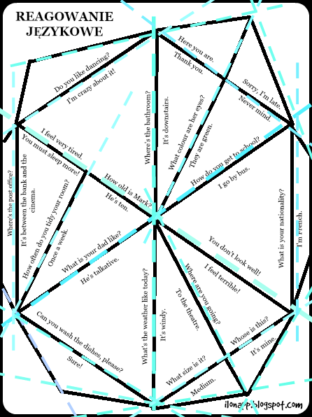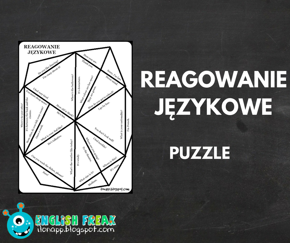 Na powtórki jest zawsze dobry czas. Im różniejsza ich forma, tym lepszy osiągamy ich skutek. Niedawno na blogu pojawiły się PUZZLE z pytaniami w języku angielskim oraz ich polskimi odpowiednikami. Tym razem prezentuję puzzle, na których łączone będzie pytanie z reakcją w języku angielskim. Nie wiem jakie macie zdanie na temat puzzli, ale ja je uwielbiam zarówno w formie edukacyjnej, jak i rozrywkowej. Bywały czasy, kiedy przy stole z puzzlami spędzało się kilka godzin z przerwą na jedzenie ☺Zauważyłam, iż wielu uczniów podziela moje uwielbienie.