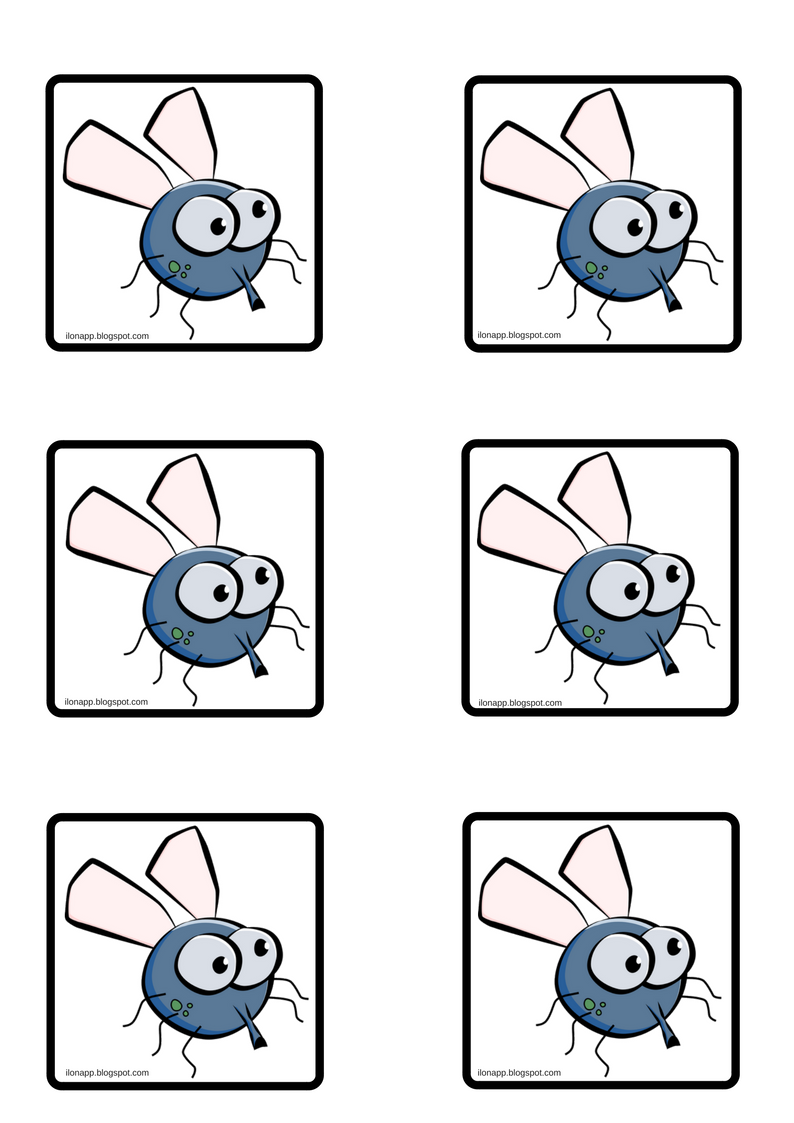 jako pogromca much poprzez umieszczenie rzepu na packach oraz muchach – na kartonikach z muchami umieszczamy obrazki, rozkładamy je na ławce/dywanie muchą do góry, uczniowie pacają i mówią, co widzą na obrazku. Wersję z pająkami proponowała Mambiatka.