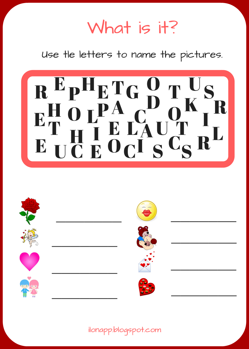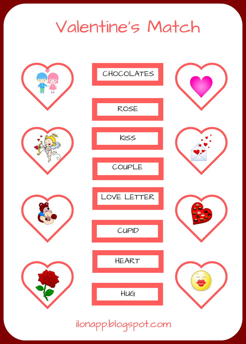 Już niedługo Walentynki ☺❤☺ W zeszłym roku przygotowałam sporo materiałów – jeśli ktoś jeszcze się z nimi nie zapoznał, to zapraszam po Dobble, Bingo, I Spy & Tabboo oraz karty obrazkowe, karty wyrazowe i grę memory. Tym razem stworzyłam trzy karty pracy. Mam nadzieję, że Wam się spodobają i przydadzą. Utrwalamy te same słownictwo, co w zeszłym roku, więc materiały się uzupełniają.