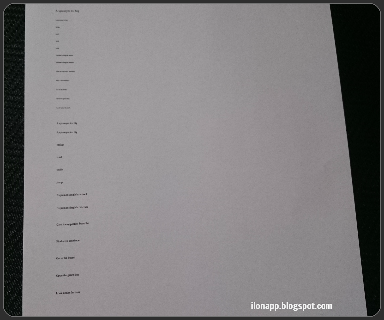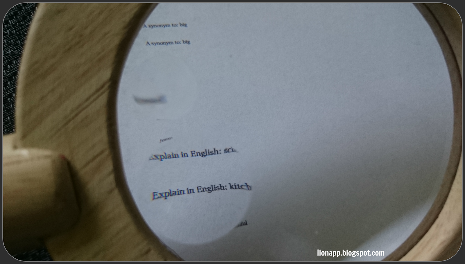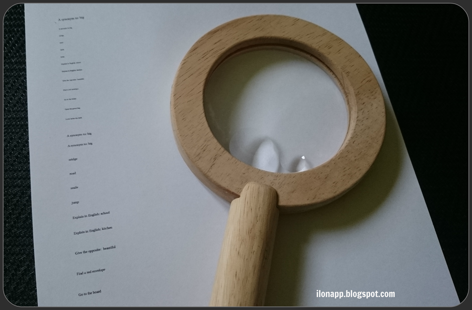 Lupę możemy wykorzystać również jako gadżet do odczytywania słówek, z którymi mamy ułożyć zdania lub opowiadanie albo przyporządkować je do grupy/ kategorii. Na podobnej zasadzie pomniejszamy ćwiczenia gramatyczne.