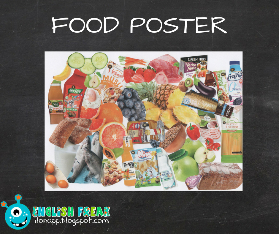 Ostatnio ogarniałam stosik z makulatura, a tam znalazłam gazetkę ze zdrową żywnością, którą nabyłam w supermarkecie 🙂 Jak powszechnie wiadomo dyskonty mają wielki potencjał jeśli chodzi o pomoce dydaktyczne, a gazetki reklamowe są za darmo i ogólnodostępne, więc nic tylko korzystać. Patrząc na to, co robi Marzena z EASY TEACHING IDEAS stworzyłam plakat / kolaż z jedzonkiem. Zanim wyrzucisz obrazek czy fotkę, zastanów się dwa razy 😉