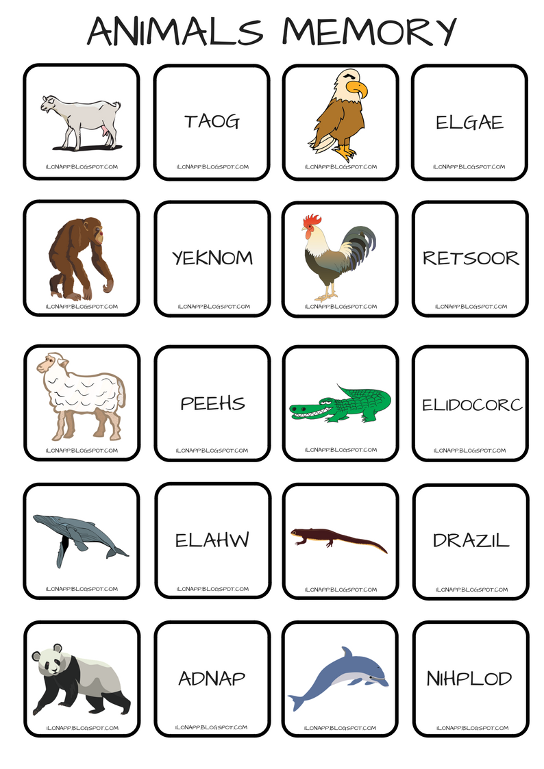 Animals Memory – obrazek plus słowo napisane wspak