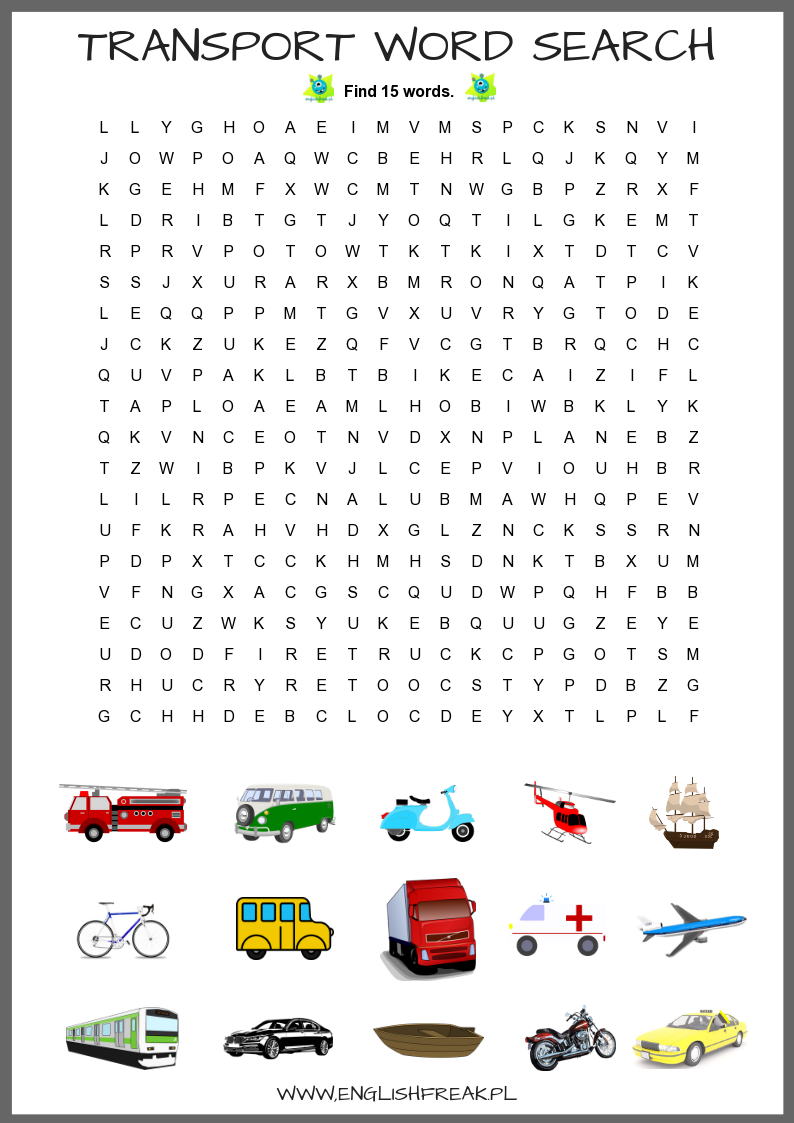 Moją drugą propozycją w tematyce środków transportu są karty pracy, które mogą stać się wielokrotnego użytku po zalaminowaniu i wręczeniu uczniom mazaków do tablic suchościeralnych (białych). W pliku znajdziecie krzyżówkę, tzw. dopasowywankę oraz moją ukochaną wyszukiwankę 🙂