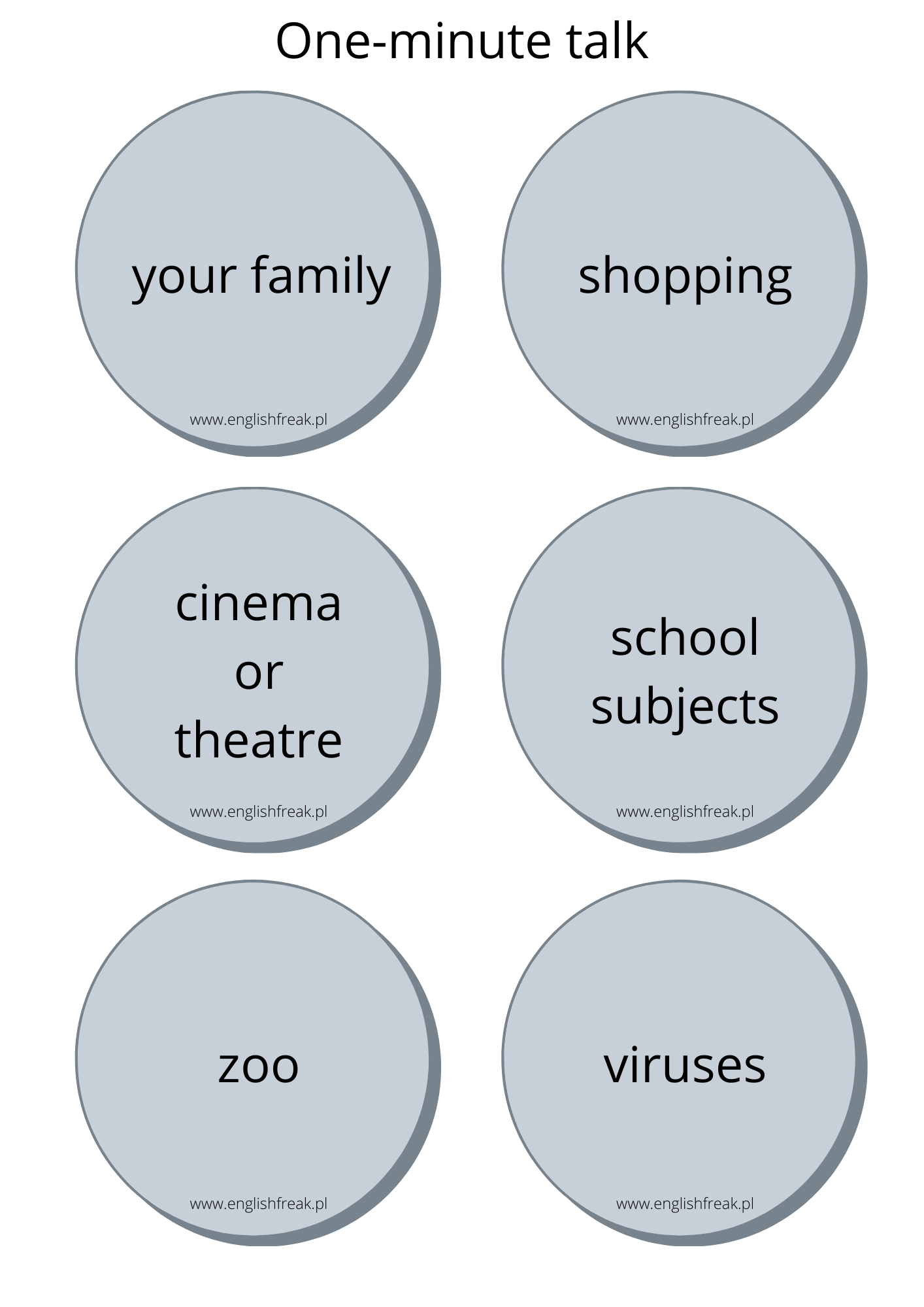 Czasami słyszy się stwierdzenia, że podstawa programowa jest tak obszerna, że nie ma czasu na trenowanie mówienia. Dlatego też, stworzyłam drugą odsłonę „one-minute talk cards”.