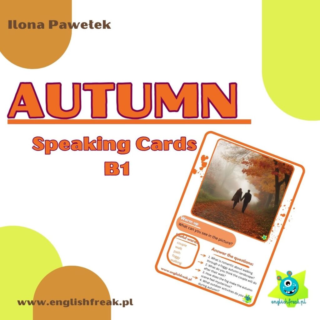 “Autumn Speaking Cards” to zestaw 15 kart konwersacyjnych, które składają się z obrazków, słów kluczowych oraz czterech pytań na każdej karcie. Są one doskonałym narzędziem do stymulowania rozmów na tematy związane z jesienią. Każda karta może być używana podczas pracy w parach lub grupach, gdzie uczniowie odpowiadają na pytania, opisują obrazek i używają słów kluczowych w swoich wypowiedziach. Jest to świetny sposób na rozwijanie umiejętności mówienia oraz poszerzanie zasobu słownictwa w przyjaznej atmosferze.