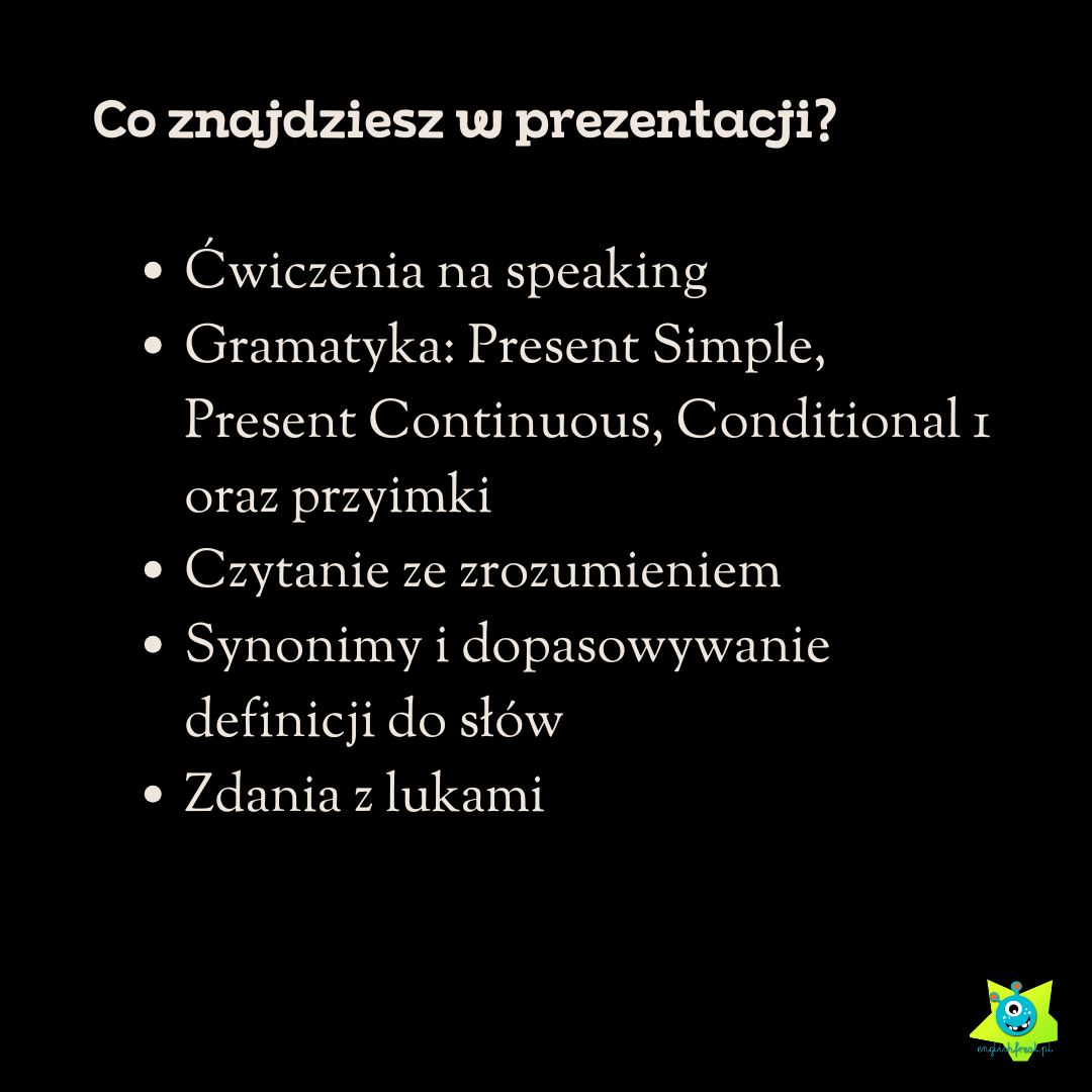 Gramatyka w kontekście: Praktyczne powtórzenie czasów Present Simple i Present Continuous, pierwszego okresu warunkowego (Conditional 1) oraz przyimków.