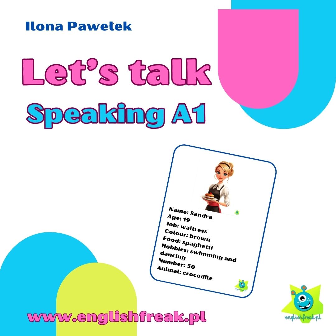 “Let’s talk – speaking cards A1”  28 kart konwersacyjnych (PDF) Przełam barierę językową od pierwszej lekcji! Let’s Talk to zestaw 28 praktycznych kart do rozmów o ludziach, ich pasjach, pracy i wyglądzie. Choć dedykowane dla poziomu A1, świetnie sprawdzą się jako elastyczny materiał na każdy etap nauki. Gotowy format PDF pozwoli Ci przygotować atrakcyjne zajęcia w kilka minut!